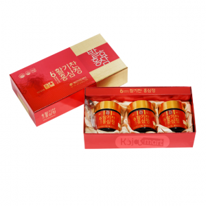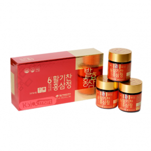 - Hồng sâm lên men 6 năm tuổi (Thành phần rắn 60%, hàm lượng Rg1 Rb1 Rg3 chiếm 4mg/g, Hàn Quốc) chiếm 10%, Tỉ lệ thành phần nguyên liệu: rễ chính 70%, rễ phụ 30%,