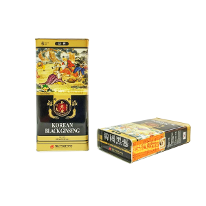 Hồng sâm 6 năm tuổi được trải qua công đoạn hấp sấy khô 9 lần với các thảo dược quý như địa hoàng bạch chỉ giúp kích thích chuyển hóa thành phần tinh bột trong hồng sâm gia tăng hàm lượng saponin trong hồng sâm và có mầu đen đậm nên còn gọi là hắc sâm hàn quốc