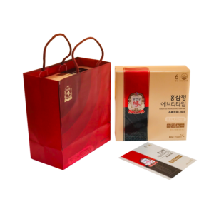 - Tinh chất hồng sâm Cheong Kwan Jang Korean Red Ginseng Extract Everytime được kết hợp giữa hồng sâm 6 năm tuổi và các loại thảo dược quý khác chứa nhiều tinh chất bổ dưỡng và các loại vitamin có lợi cho cơ thể. Hương vị nhẹ nhàng, thơm ngon hợp với mọi thành viên trong gia đình mọi lúc mọi nơi
